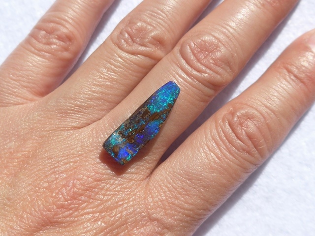 重さ11.73ct 大きさ20×11×5mm フリーシェイプオーストラリア、クイーンズランド州産 ボルダーオパール青色が輝くオパールです。 表面がオパール層となっているフルフ…