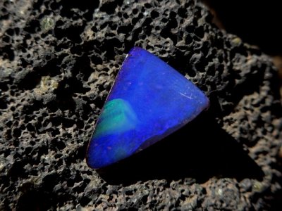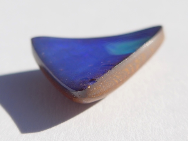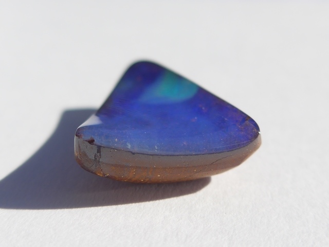 その青色の中に緑斑を一滴落としたような模様がとっても面白く、このオパールの景色に惚れて仕入れました。
