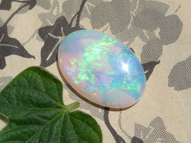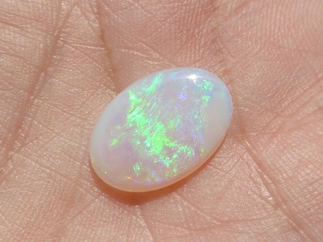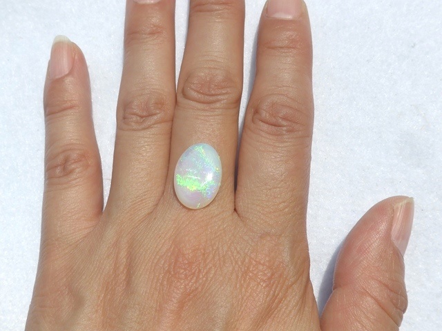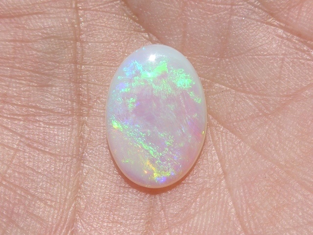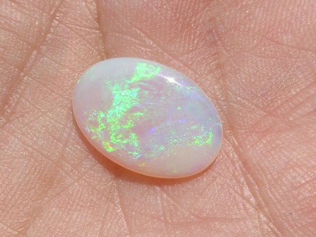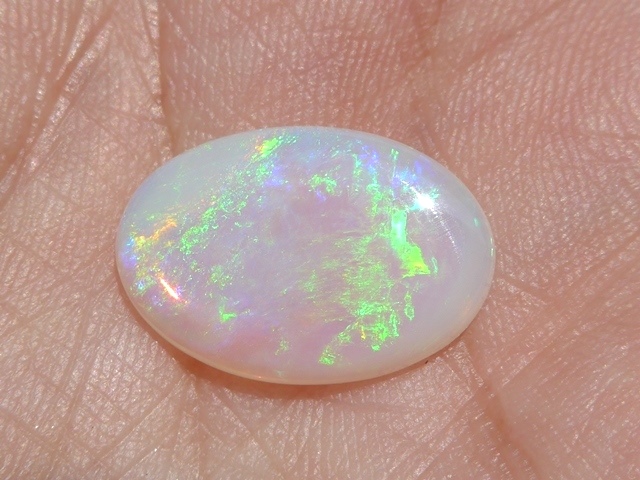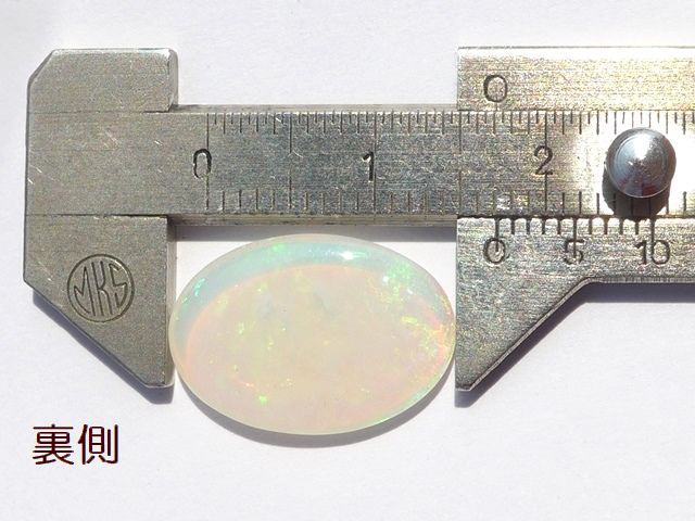 曇り掛かった個所もありますが、裏側でも斑が輝き、全体的にプレシャスオパールのルース。