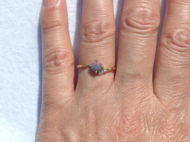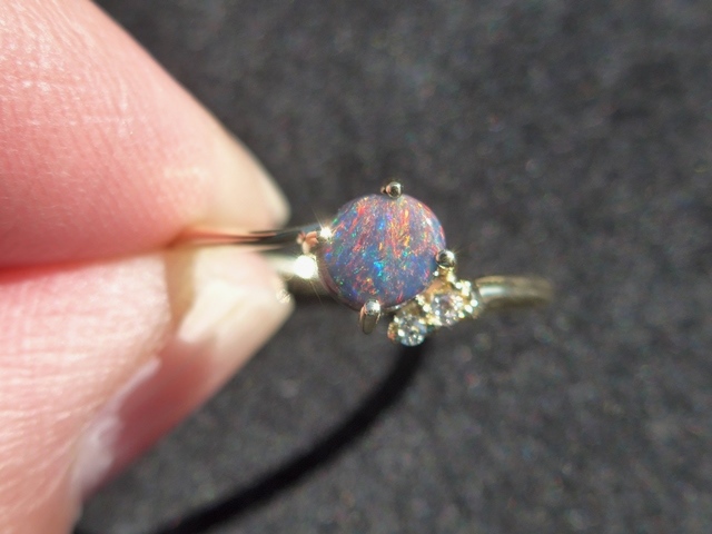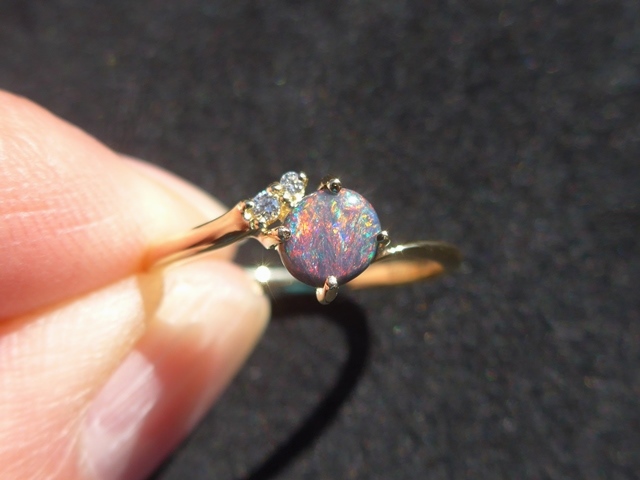 ライトニングリッジ産ブラックオパール 0.42ct(刻印有) オパールの大きさ:約縦5.5×横4.8mm