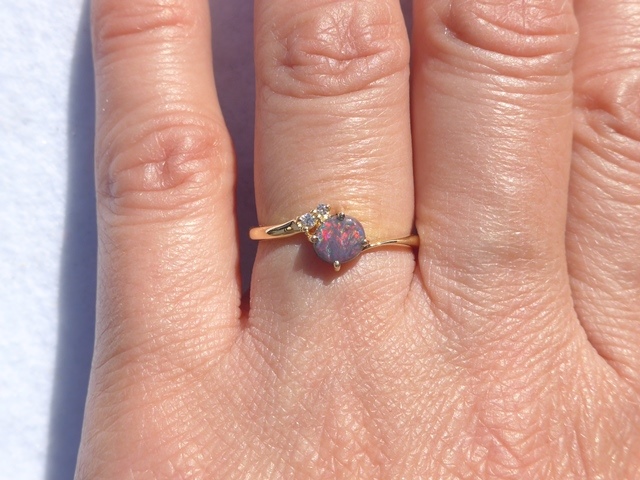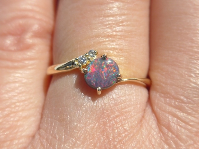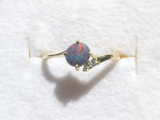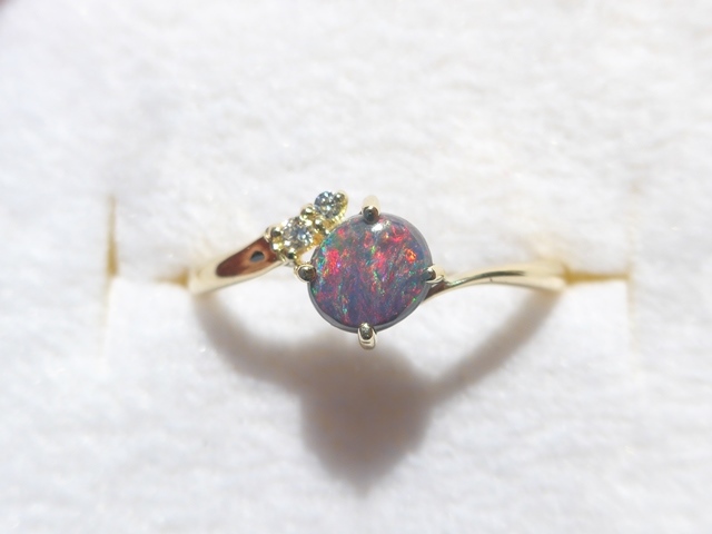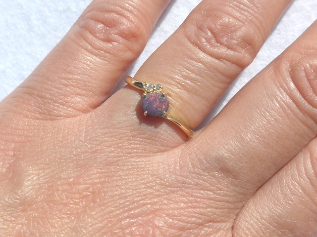 「着けながら眺めたい!」オパールの中でも希少性が高く「憧れの赤」がメインに輝くリングです。