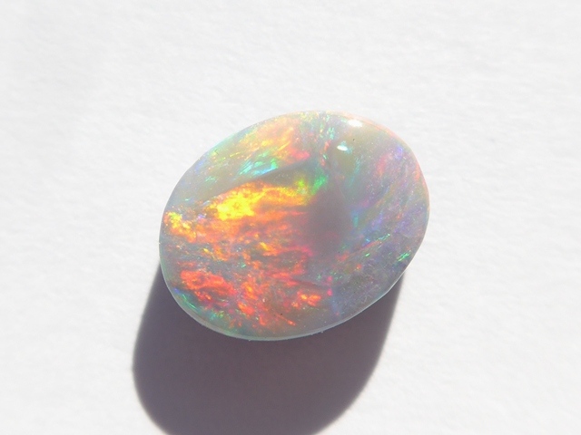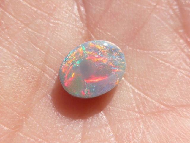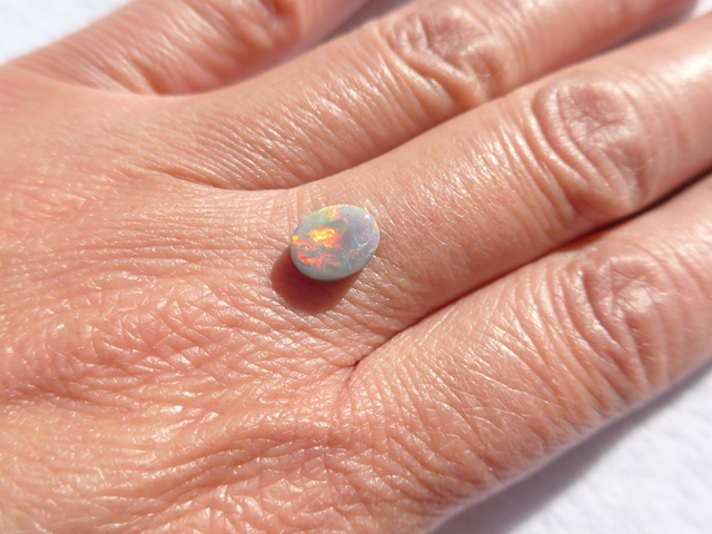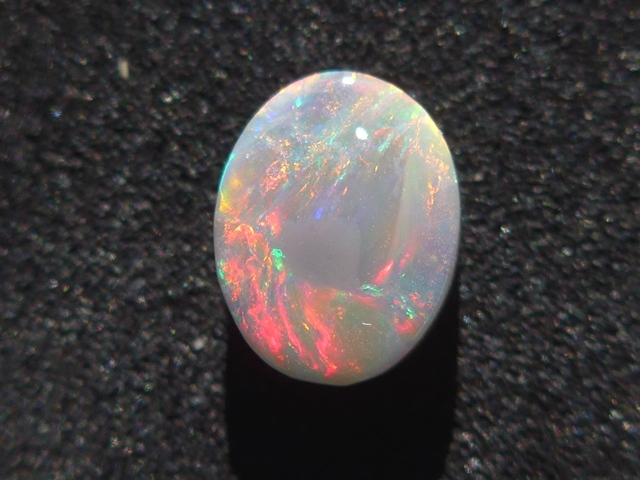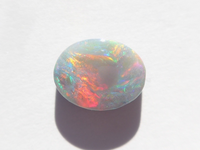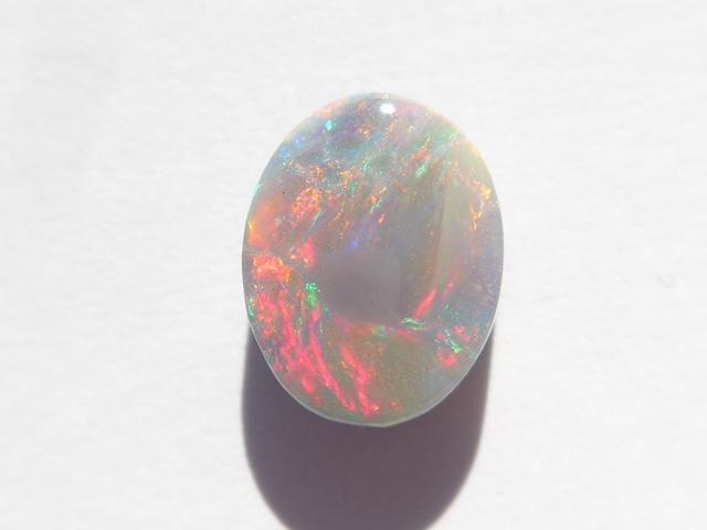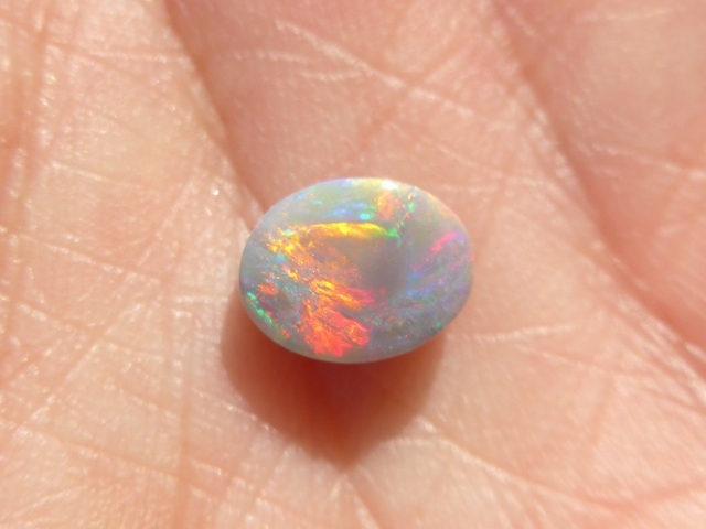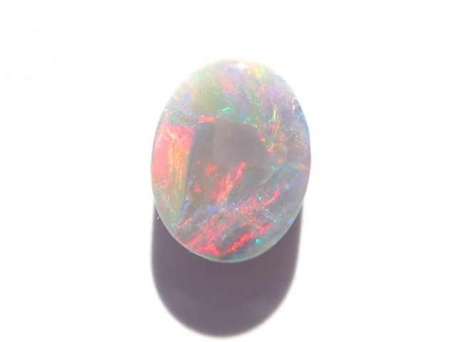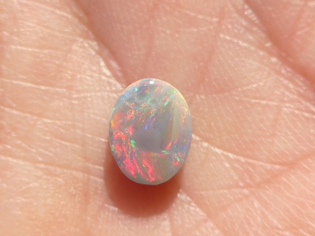 重さ2.79ct 大きさ11×9×4mm オーバル形オーストラリア、ライトニングリッジ産オパール赤斑が輝くマルチカラーのオパールです。斑の発色が良く、どの方向から見ても同じよう…