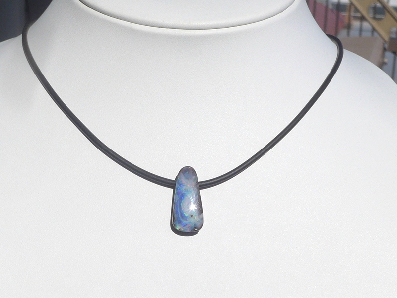 ペンダント:重さ10.7g(紐込) 縦3.1×横1.9 ×厚さ0.6cm オパール:オーストラリア、クイーンズランド州産ボルダーオパールラバーネックレス:長さ約52cm 太さ…