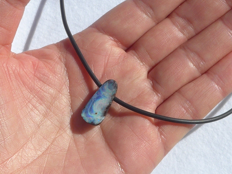 ペンダント:重さ6g(紐込) 縦1.9×横1.5×厚さ0.5cm オパール:オーストラリア、クイーンズランド州産ボルダーオパールラバーネックレス:長さ約53cm 太さ2mm …