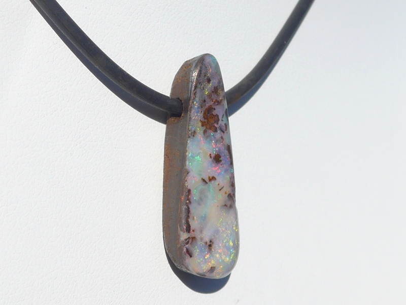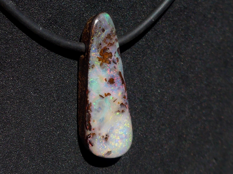 ペンダント:重さ5.2g(紐込) 縦2.1×横1×厚さ0.6cm オパール:オーストラリア、クイーンズランド州産ボルダーオパールラバーネックレス:長さ約53cm 太さ2mm …