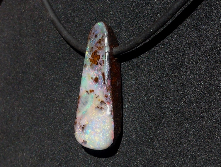 ペンダント:重さ10.7g(紐込) 縦3.1×横1.9 ×厚さ0.6cm オパール:オーストラリア、クイーンズランド州産ボルダーオパールラバーネックレス:長さ約52cm 太さ…