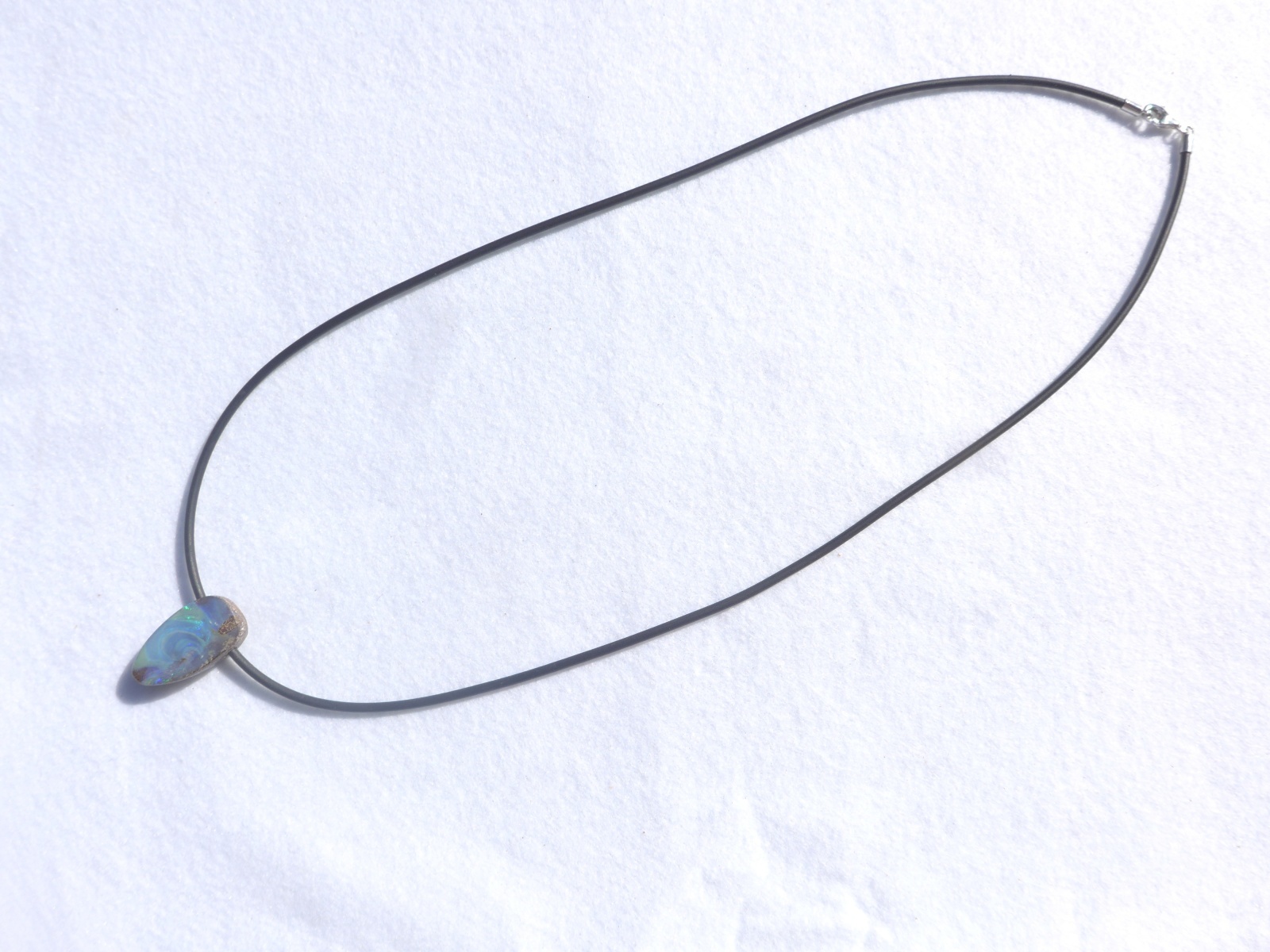 ペンダント:重さ5.2g(紐込) 縦2.1×横1×厚さ0.6cm オパール:オーストラリア、クイーンズランド州産ボルダーオパールラバーネックレス:長さ約53cm 太さ2mm …