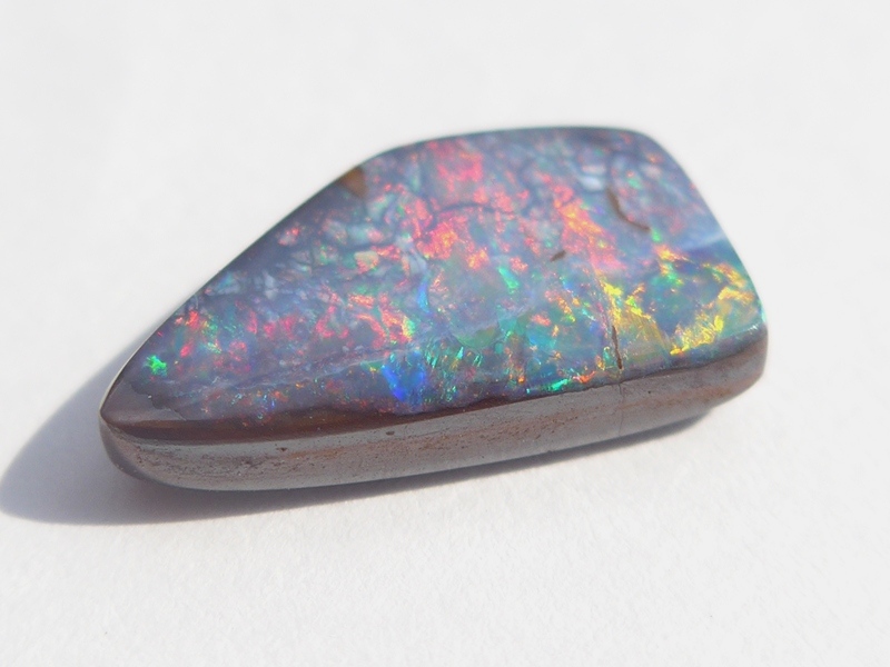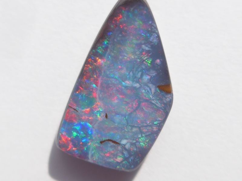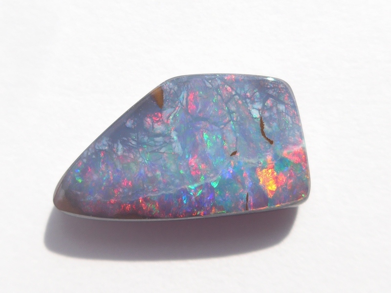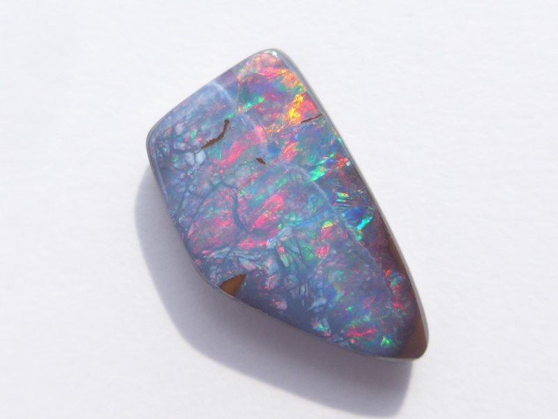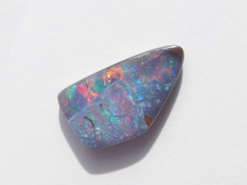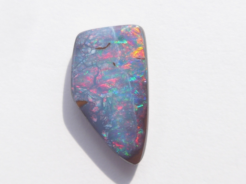 重さ3.34ct 大きさ11.8×9.5×3.5mm フリーシェイプオーストラリア、クイーンズランド州産ボルダーオパール赤斑が輝くマルチカラーのオパールです。母岩の鉄鉱石が表面…