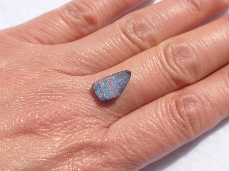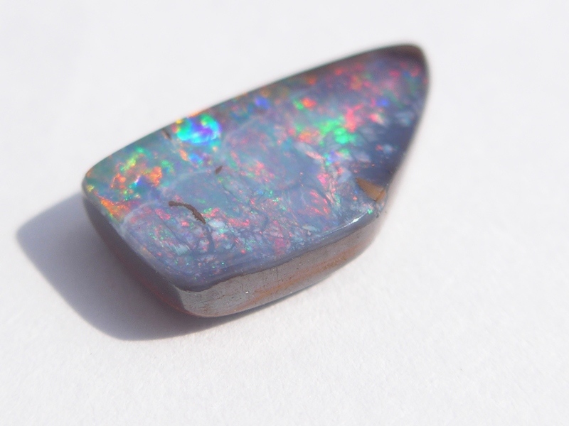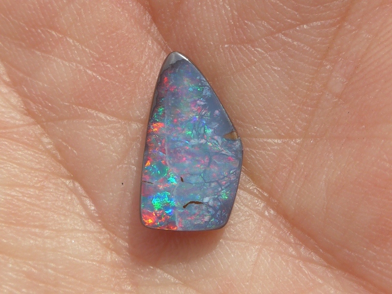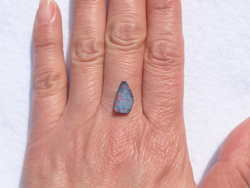 重さ3.07ct 大きさ11×8.5×3mm フリーシェイプオーストラリア、クイーンズランド州産ボルダーオパール青斑の中に斑が輝くオパールです。端に少しだけ母岩の鉄鉱石が見えて…