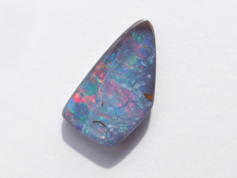 重さ5.80ct 大きさ20×10×4mm オーバル形オーストラリア、クイーンズランド州産 ボルダーオパール赤や青、緑とカラフルな色が輝くオパールです。 こちらも鉄鉱石の母岩の…