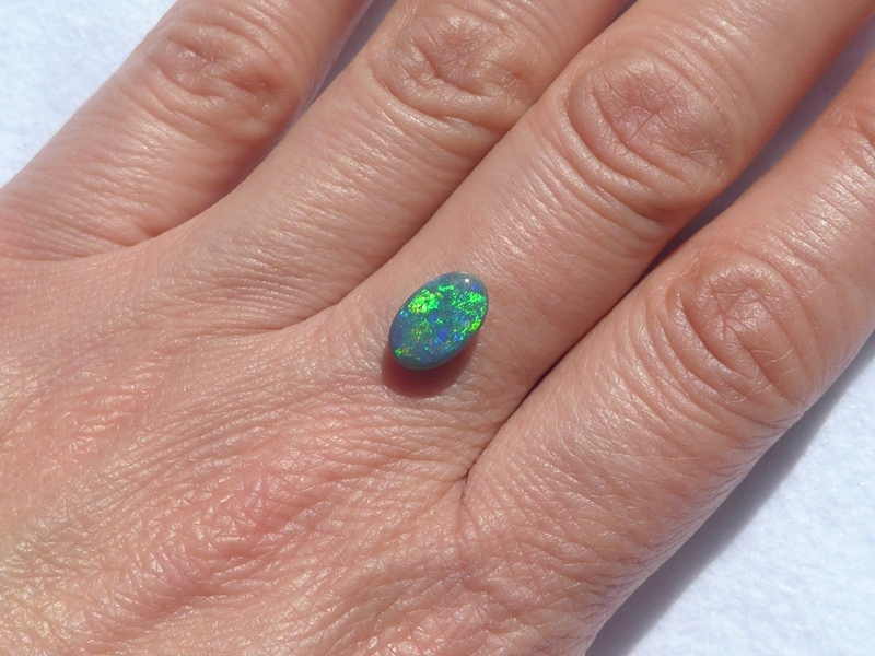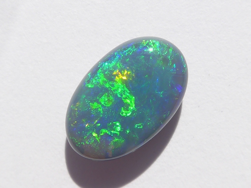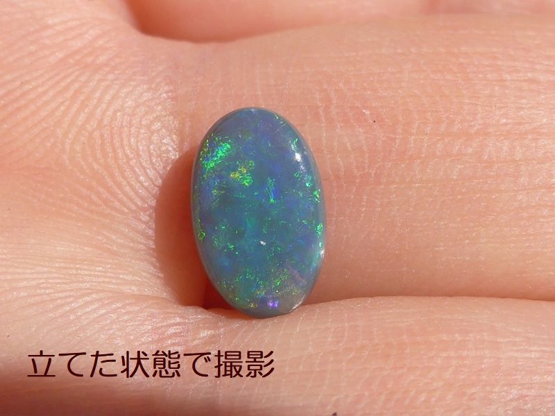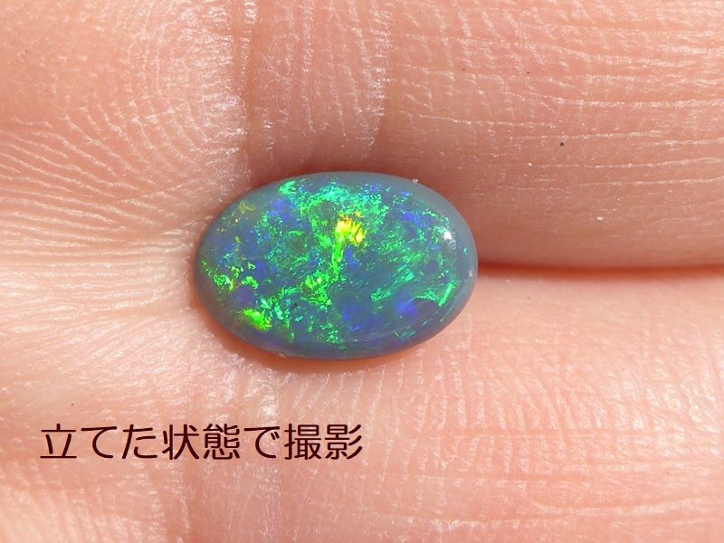 重さ 1.72ct 大きさ13.8×9×2.5mm フリーシェイプオーストラリア、ライトニングッジ産ブラックオパール鮮やかなブルーグリーン斑が輝くオパールです。斑立ちの良い向き…