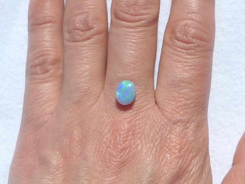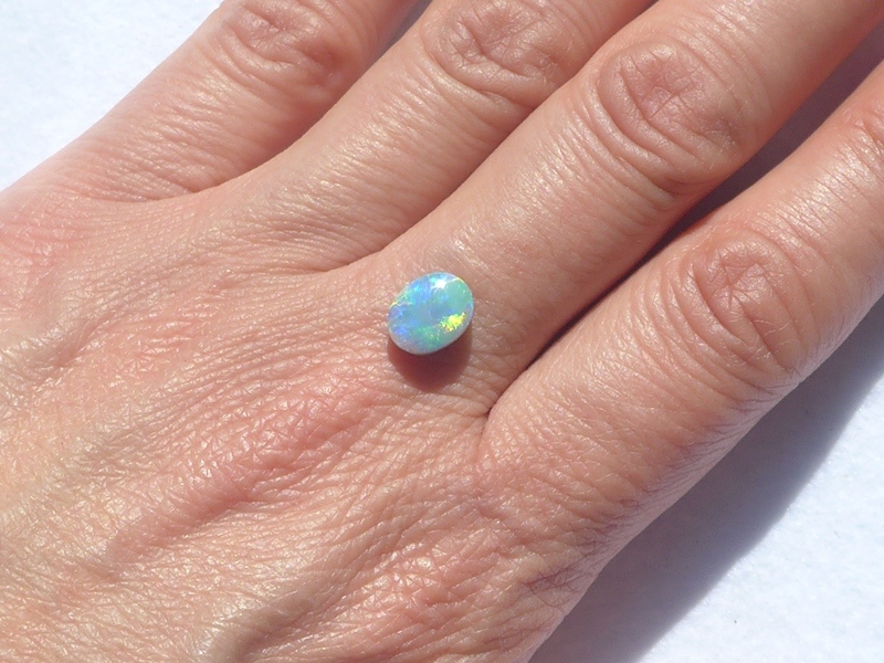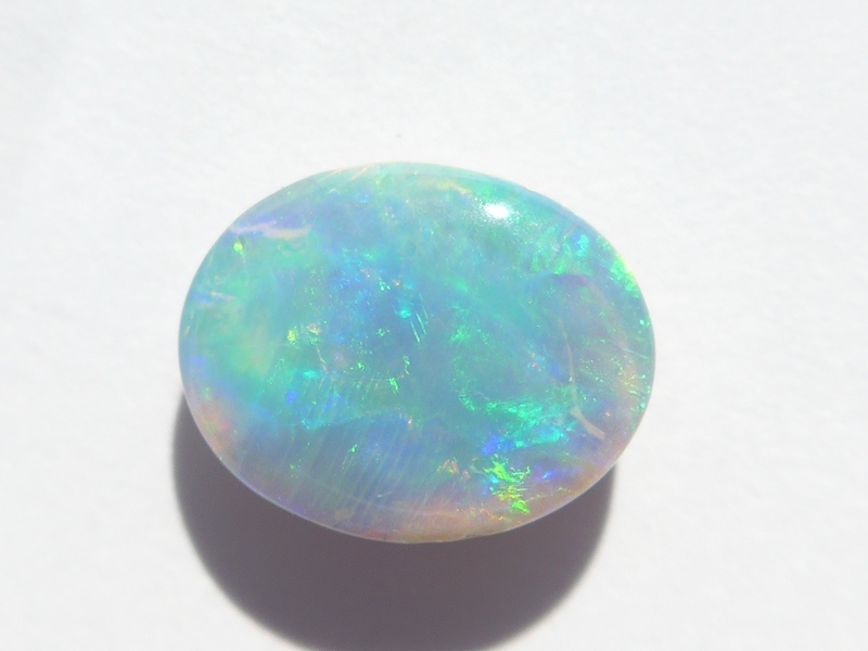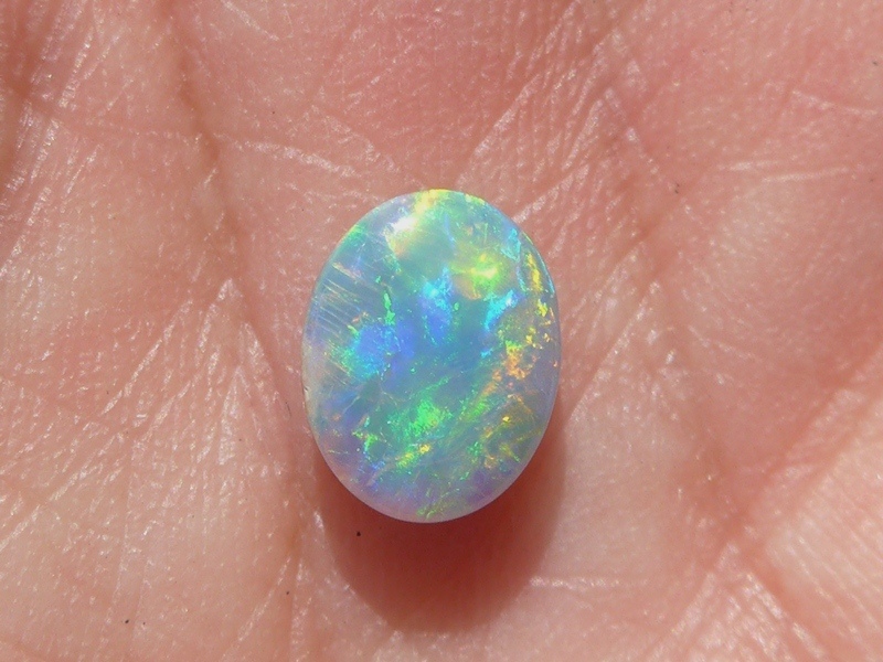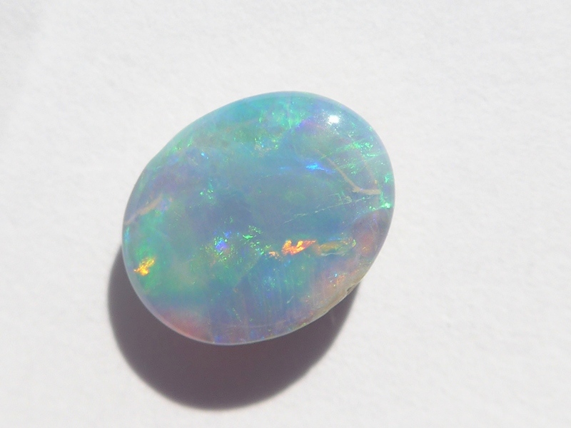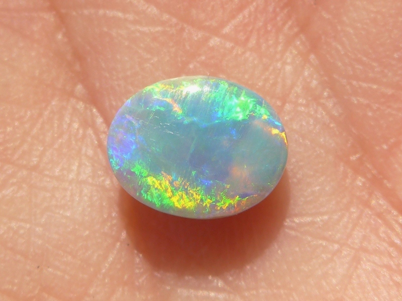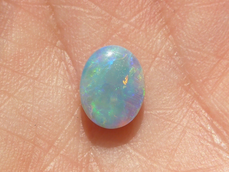 明るいブルーグリーン斑も美しい色を放っていて、発色と斑立ちの良い向きがあり、ライトカラー地のオパールならではの煌めきに質の良さと上品さを感じます。