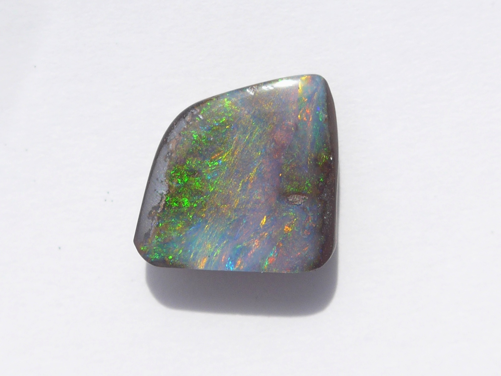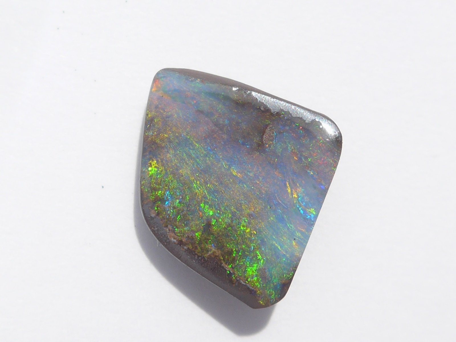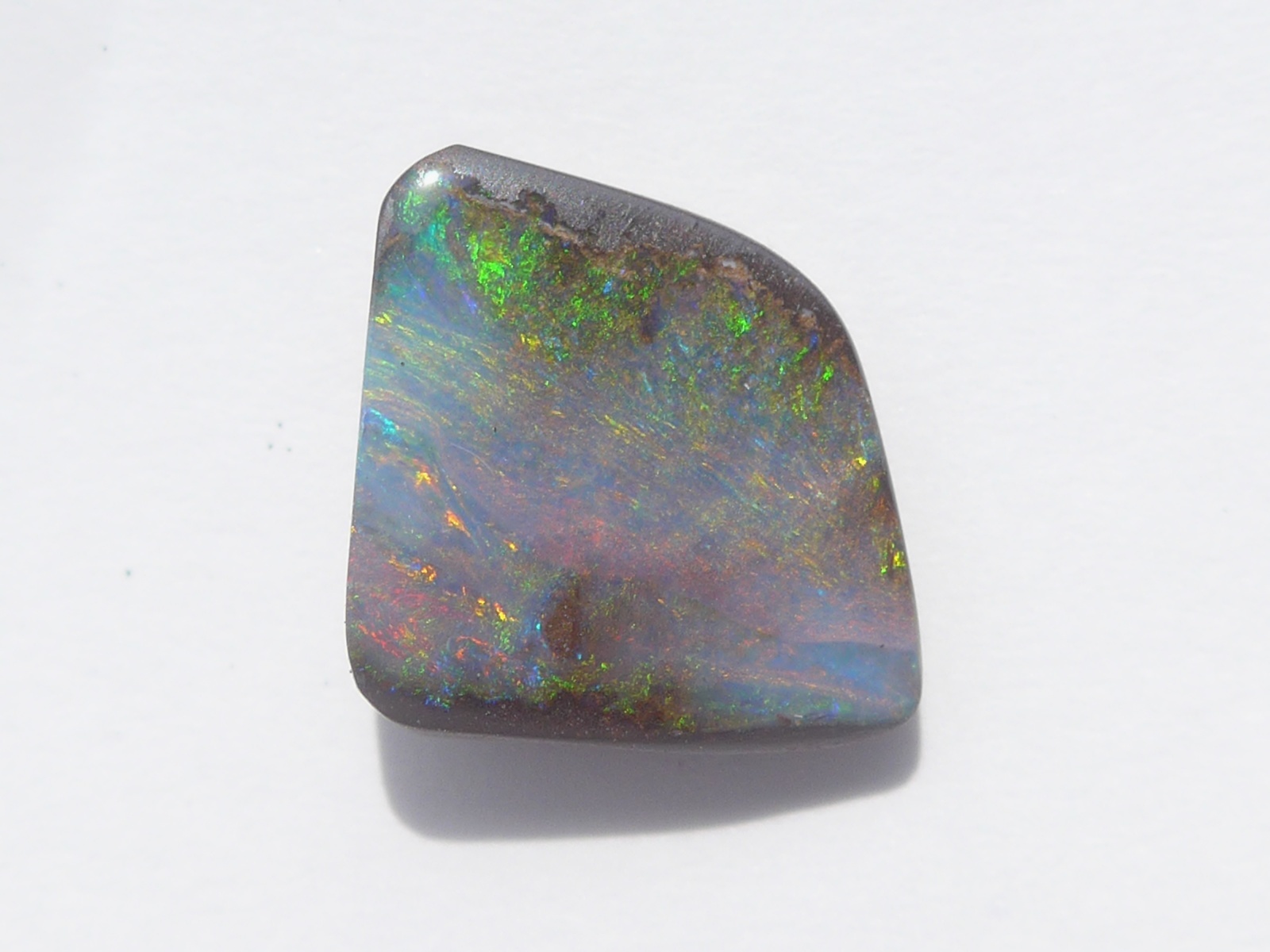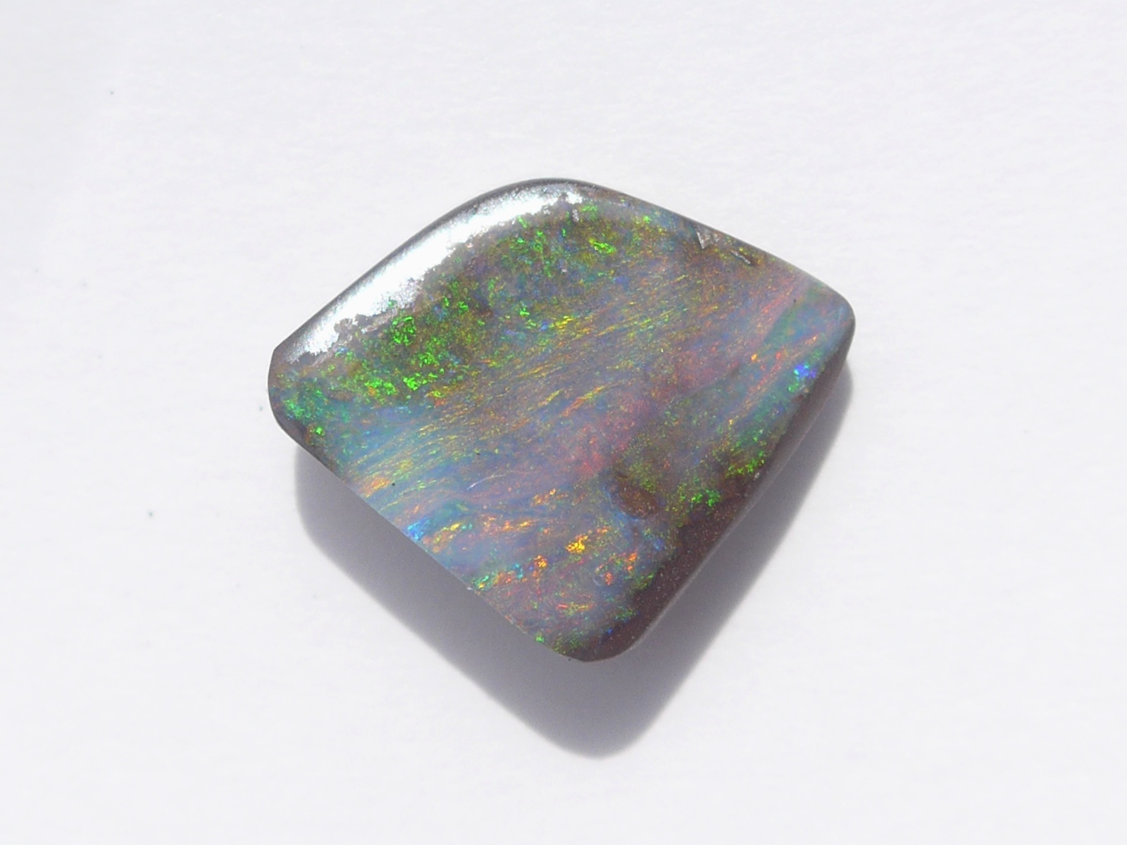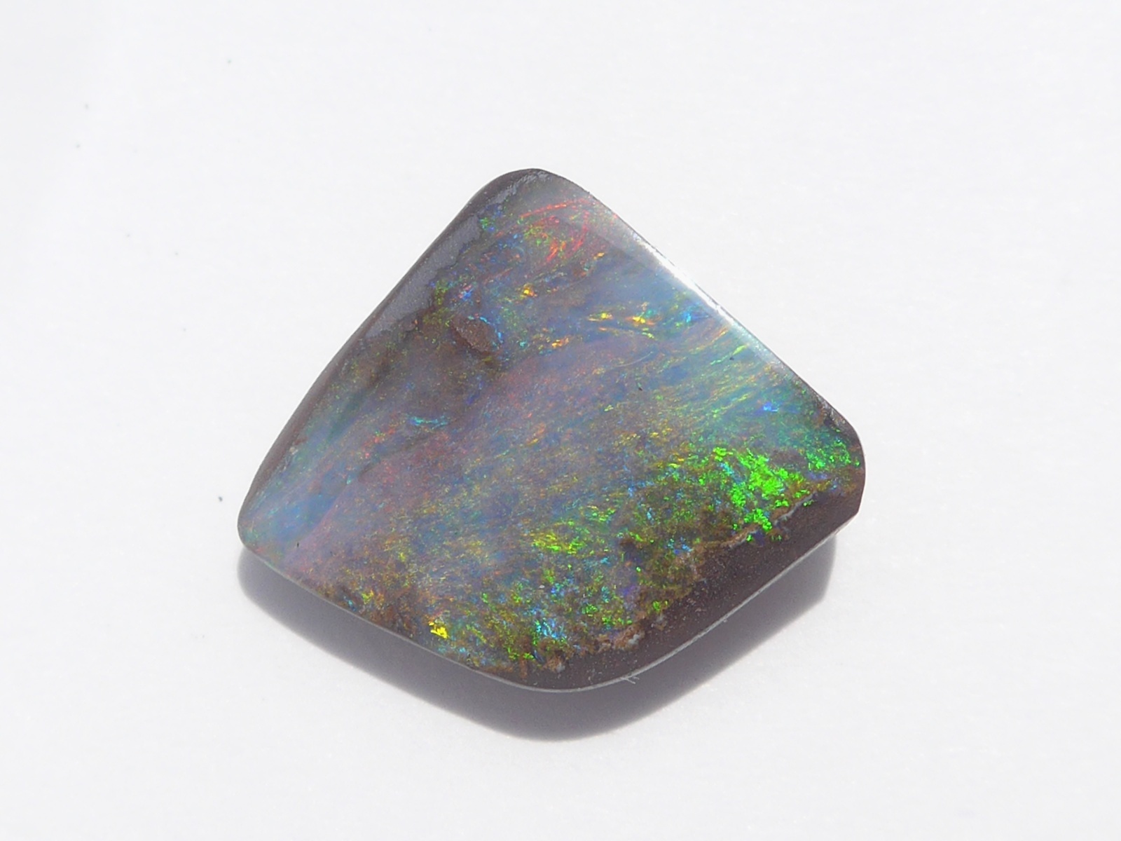 重さ3.34ct 大きさ11.8×9.5×3.5mm フリーシェイプオーストラリア、クイーンズランド州産ボルダーオパール赤斑が輝くマルチカラーのオパールです。母岩の鉄鉱石が表面…